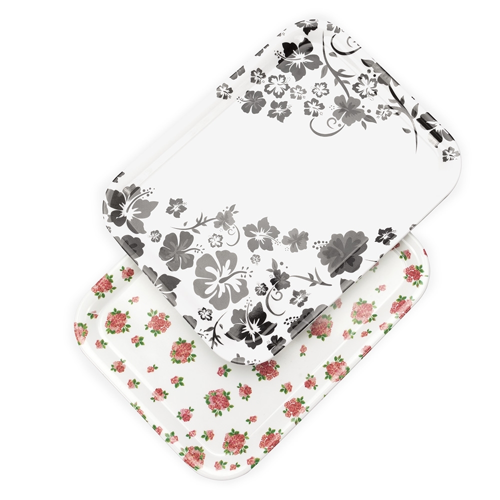 Esta é uma bandeja retangular multifuncional feita em melamina, material conhecido por sua resistência a impactos, leveza, facilidade de limpeza e também por não reter cheiro nem sabor.