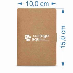 Bloco de anotações ecológico, material em kraft. Possui uma trava na própria capa, cinco blocos autoadesivos coloridos com aproximadamente 25 folhinhas , bloco autoadesivo amarelo com aproximadamente 25 folhas e bloco grande com aproximadamente 70 folhas. OBS.: IMAGEM MERAMENTE ILUSTRATIVA, não acompanha caneta!