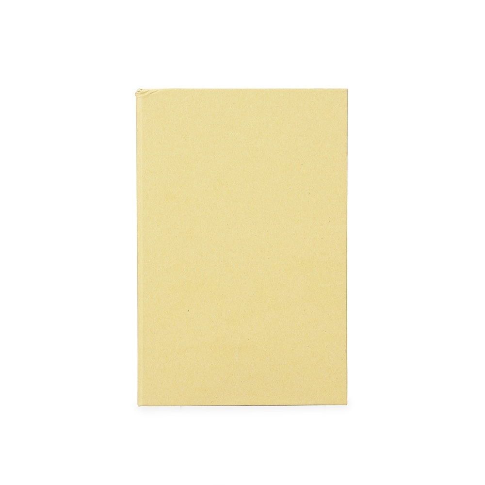 Caderneta leve e versátil, com capa dura em papel kraft e acabamento liso na frente e no verso. Contém aproximadamente 60 folhas amareladas com pauta e duas folhas de guarda.