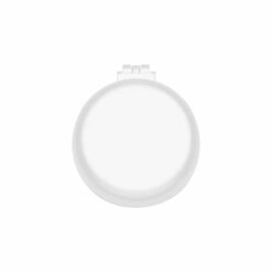 Escova com espelho redonda em plástico resistente. Parte superior plana e parte inferior emborracha com relevo, estando aberta a peça basta empurrar a parte emborrachada(lado de fora) para poder utilizar a escova.