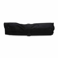 Kit churrasco 8 peças em estojo de nylon. Contém espátula, garfo, faca, pegador, saleiro, paliteiro, luva e avental (também utilizado como estojo). Talheres de inox com acabamento de madeira e avental de nylon com alça ajustável ? possui botão e alça com fivela para lacre.