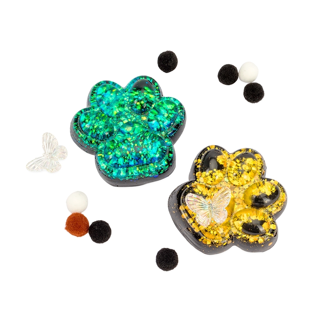 Brinquedo apertável antiestresse em formato de pata estilizada, produzido em borracha termoplástica lisa e macia. Adere facilmente a superfícies planas e acompanha bolinhas de pelúcia para decoração.